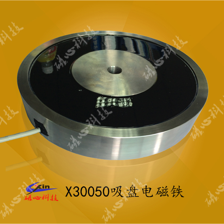 吸盤電磁鐵X300050是由直徑300mm,高度50mm ,表面有防水灌封膠組成的一種電磁鐵。