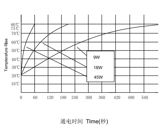 2,圖中四條線分別代表四種功率以及相應的通電頻率。