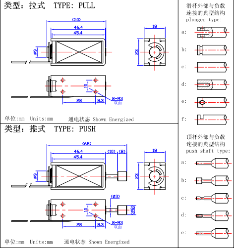圖解:1,上圖描述的是推拉式電磁鐵的行程和力量曲線圖