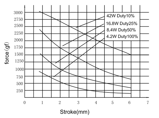 縱向:代表電磁鐵在對應行程時的力量 單位為克(g)